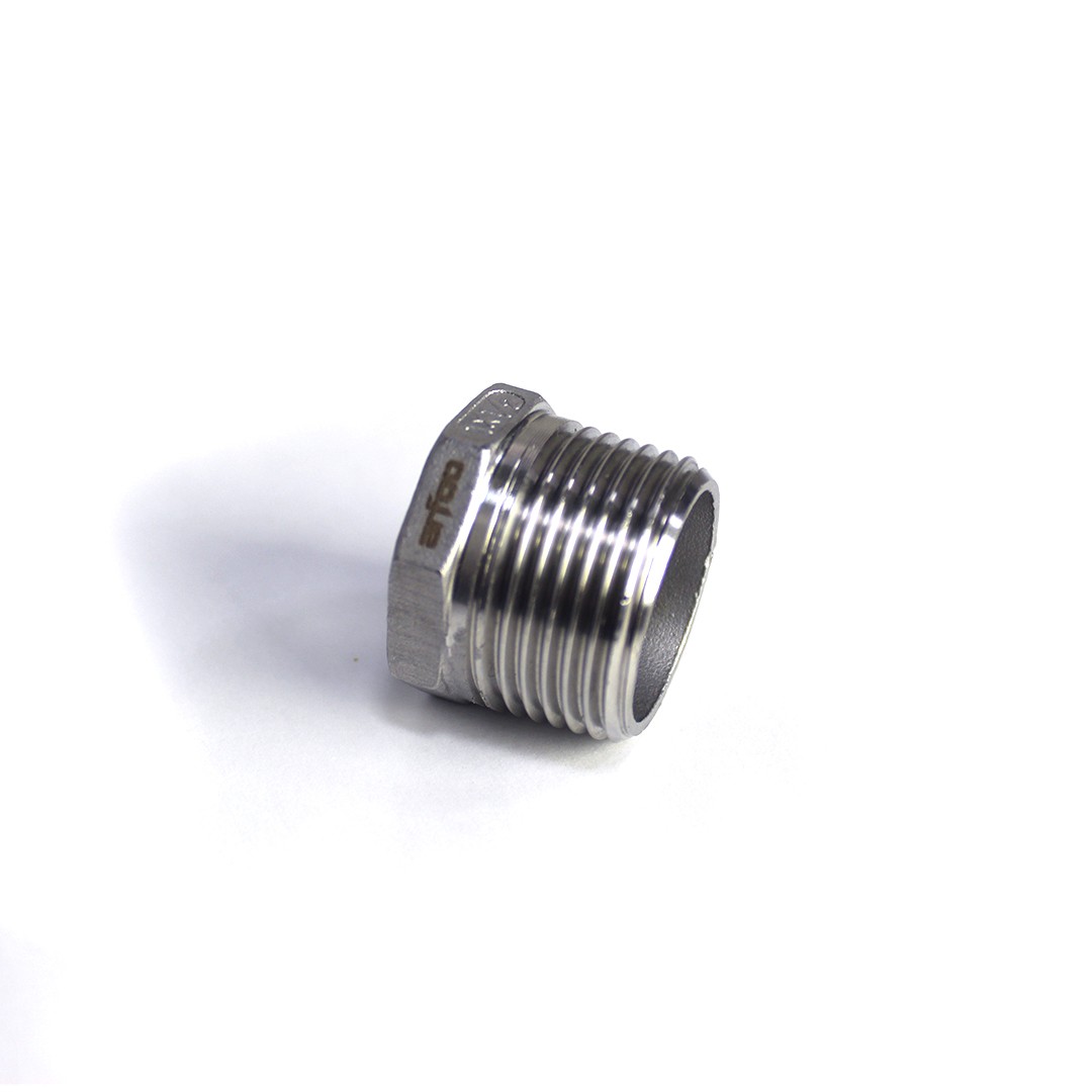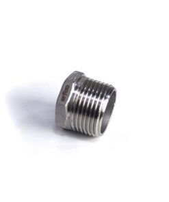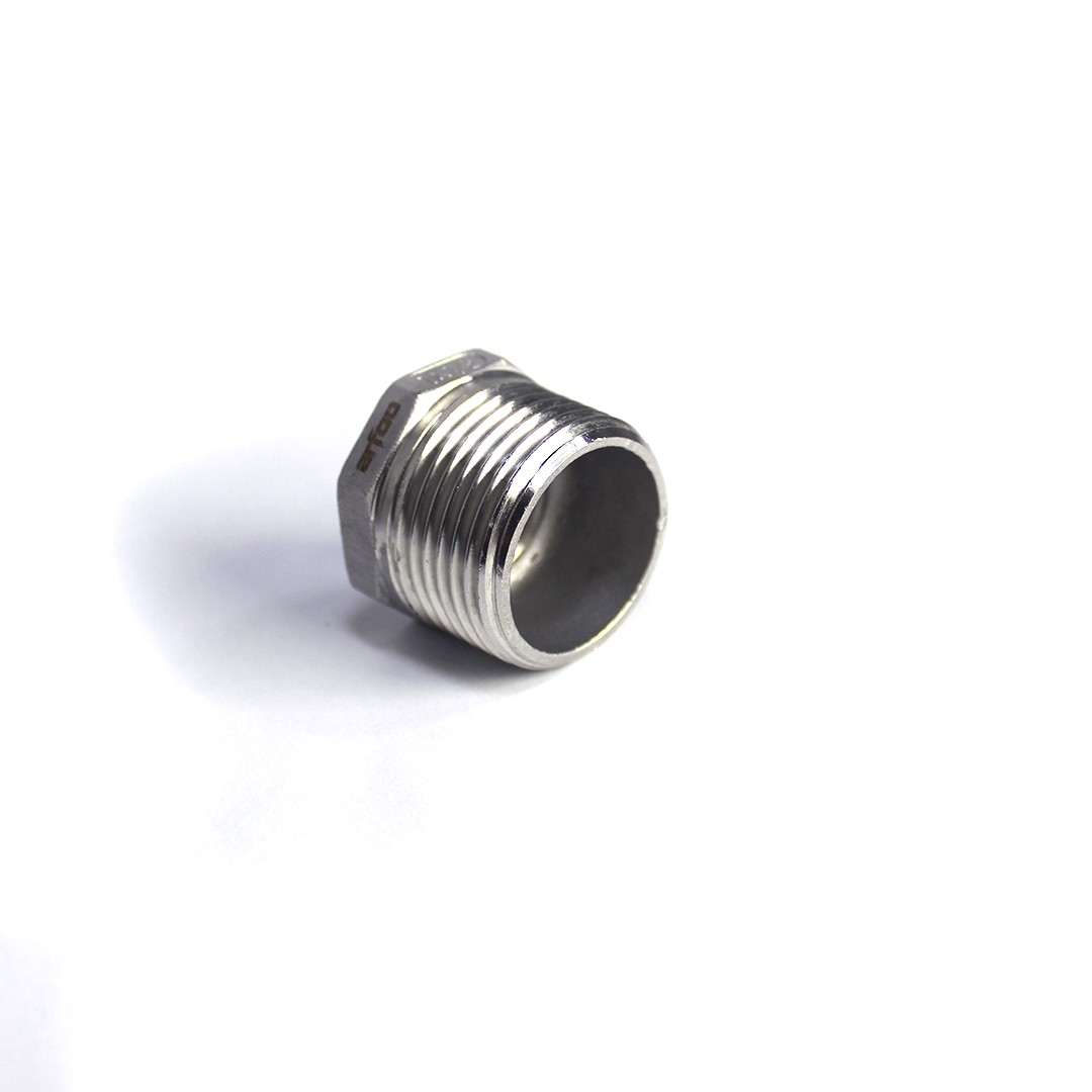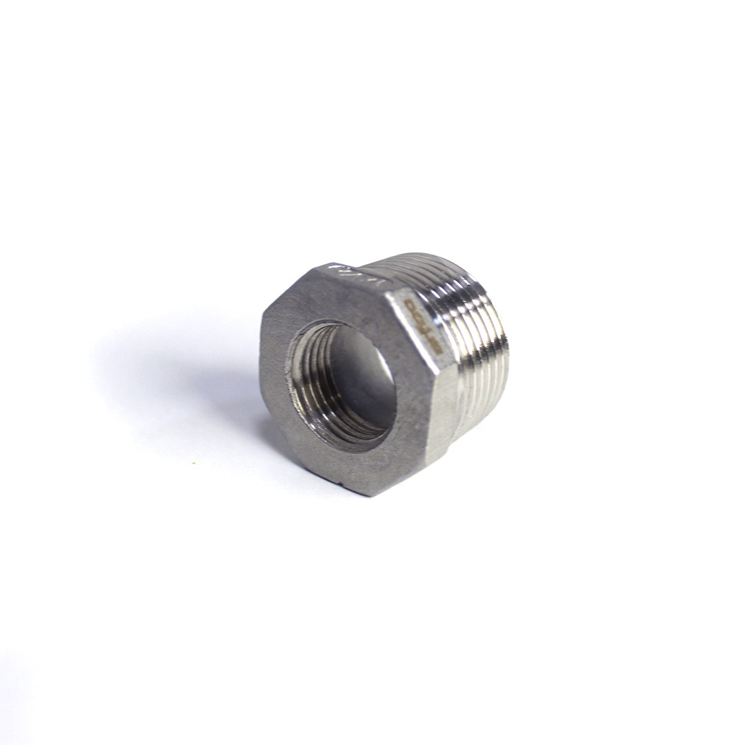 - Bucha rosca macho 1” BSP x Rosca fêmea ½’’ BSP em aço inox.