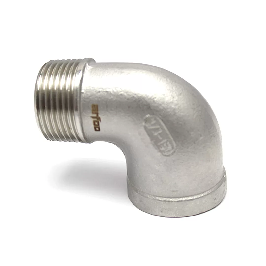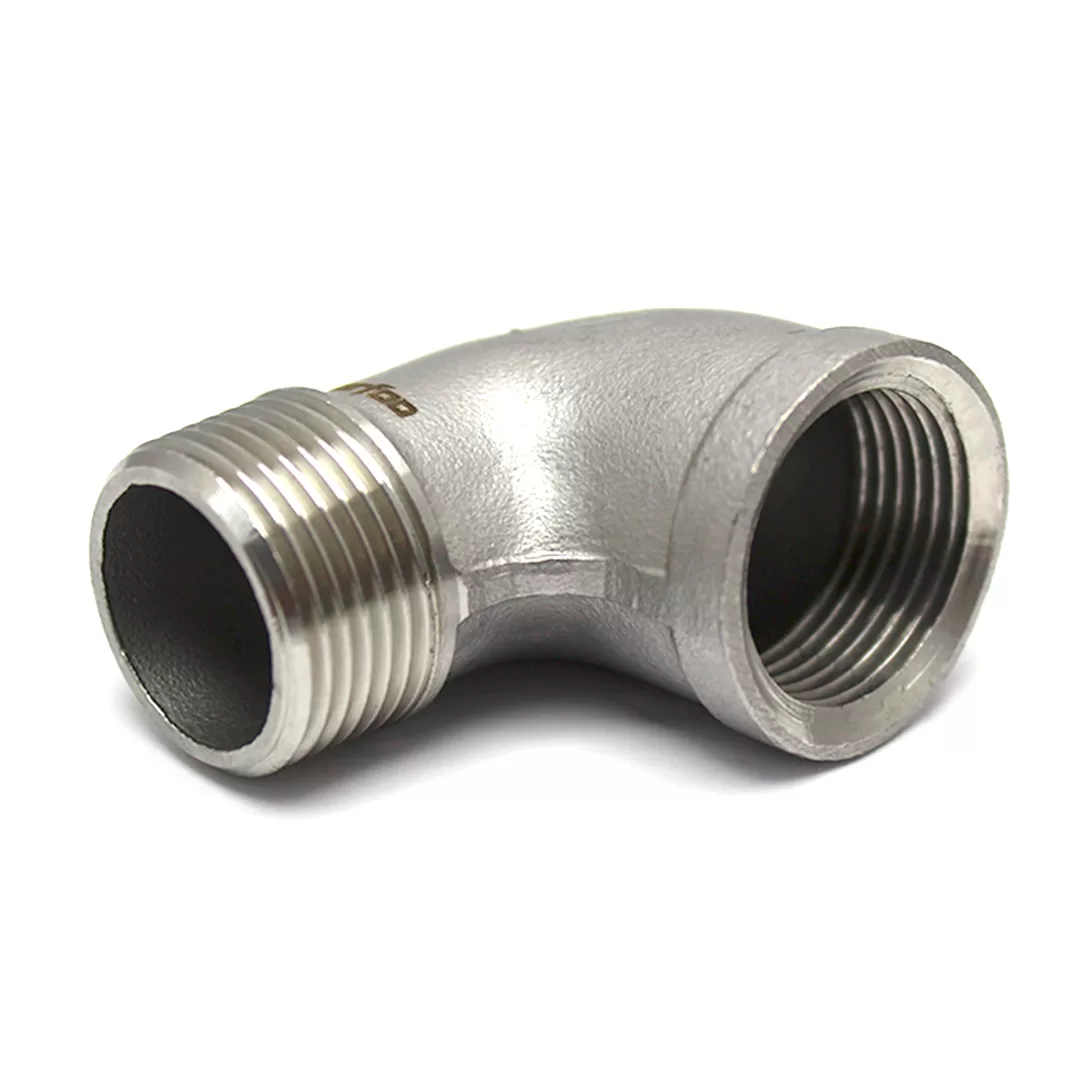 • Cotovelo 90° Macho 1/2” NPT x Fêmea de 1/2” NPT em aço inox 304.