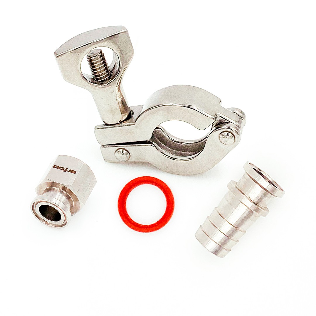 Kit Fêmea NPT x TC 1/2 + TC Espigão 3/4 com abraçadeira TC