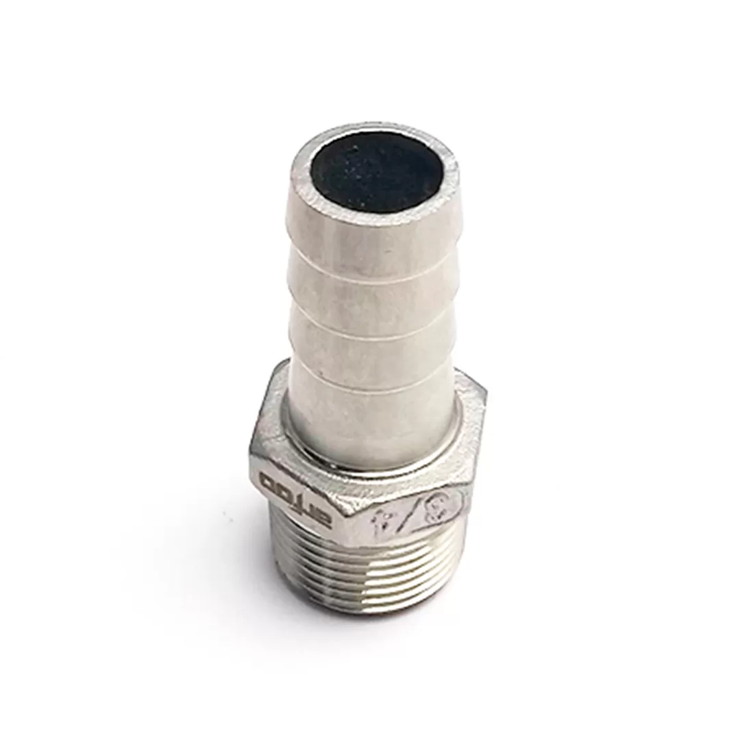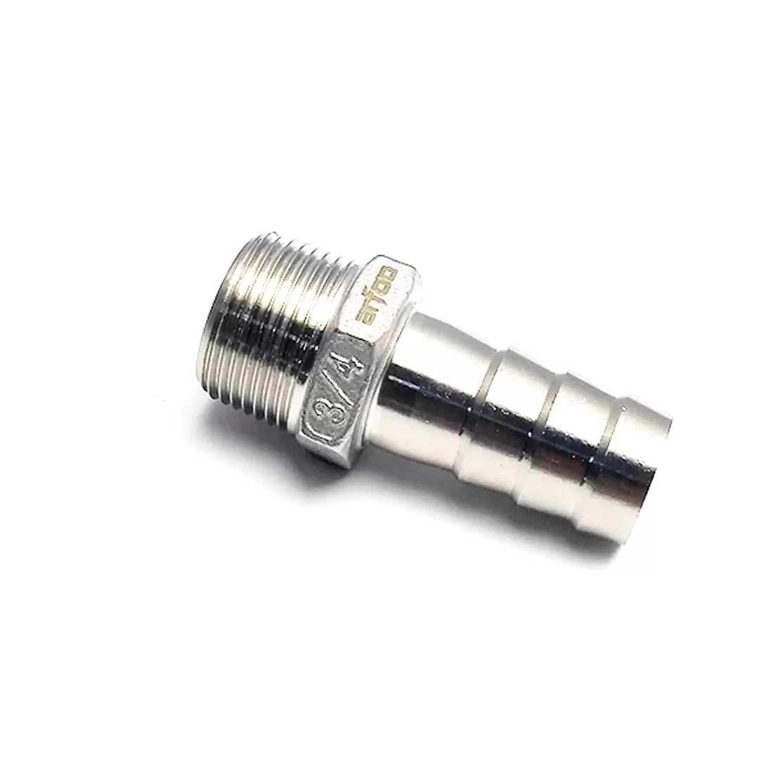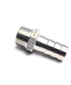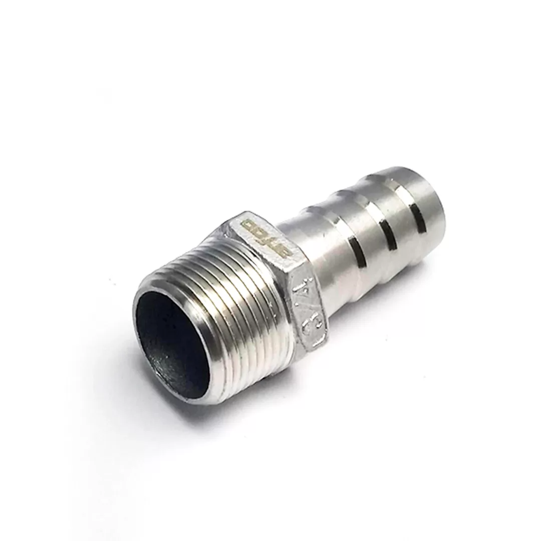 • Cor: Prata. - Rosca macho 3/4” BSP x Espigão de 3/4” em aço inox, para tubos e mangueiras.