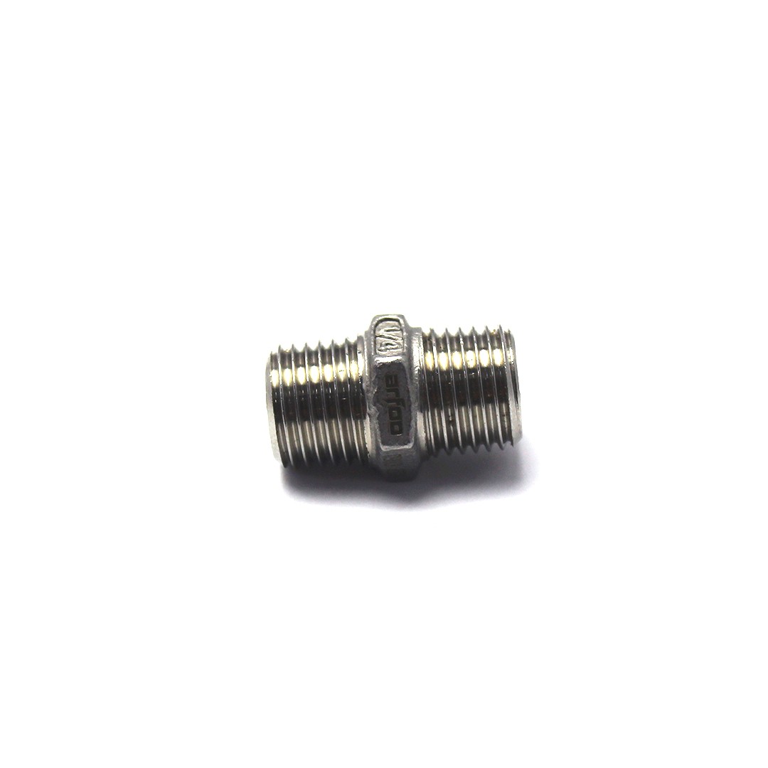 Niple com rosca de 1/4” BSP em aço inox.