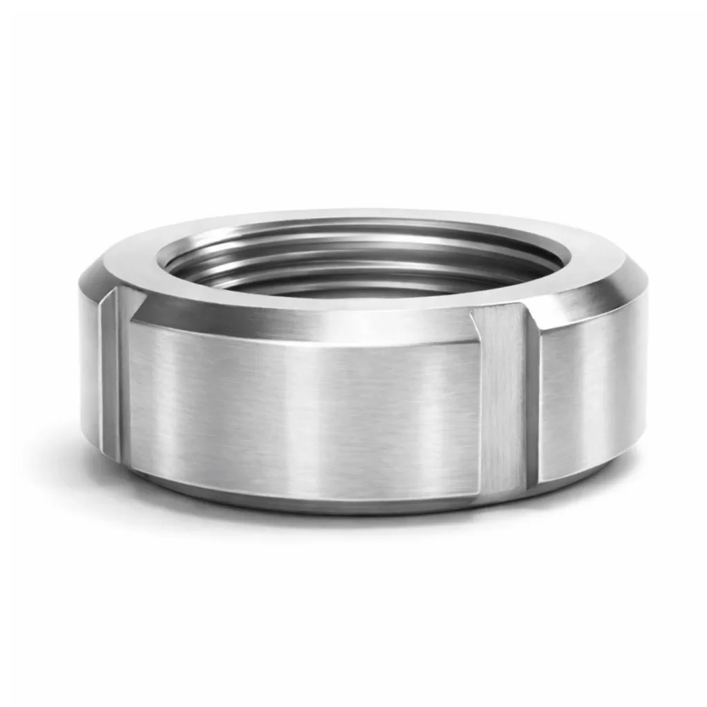 A Porca SMS Inox 1.1/2” é projetada para realizar a fixação segura de conexões sanitárias padrão SMS em sistemas de tubulação industrial.