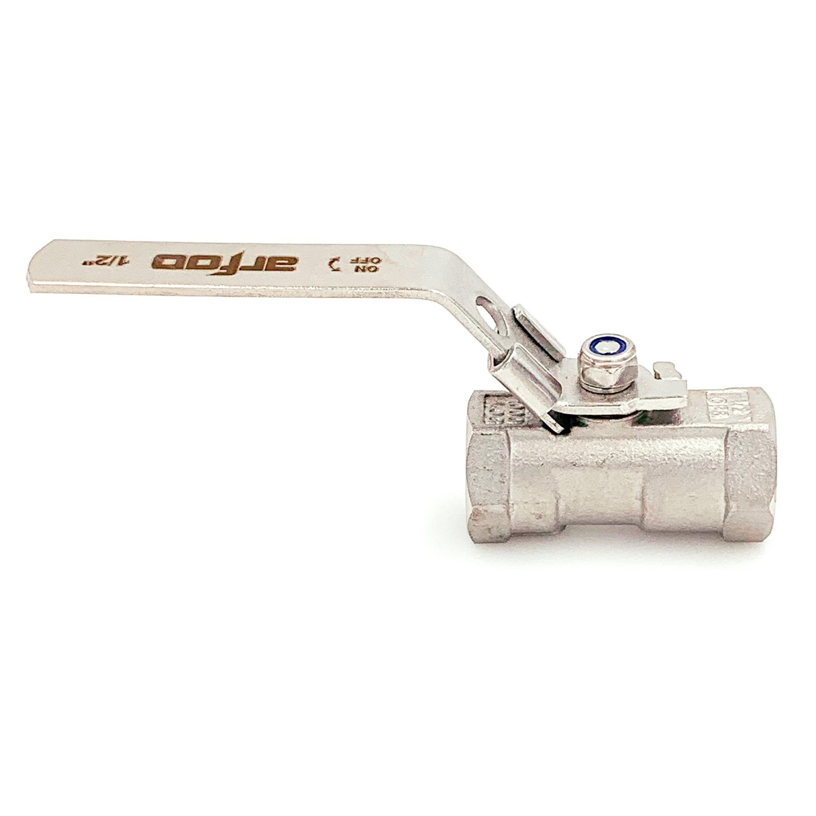 Válvula esfera Monobloco com Rosca fêmea de 1/2″ em aço e inox.