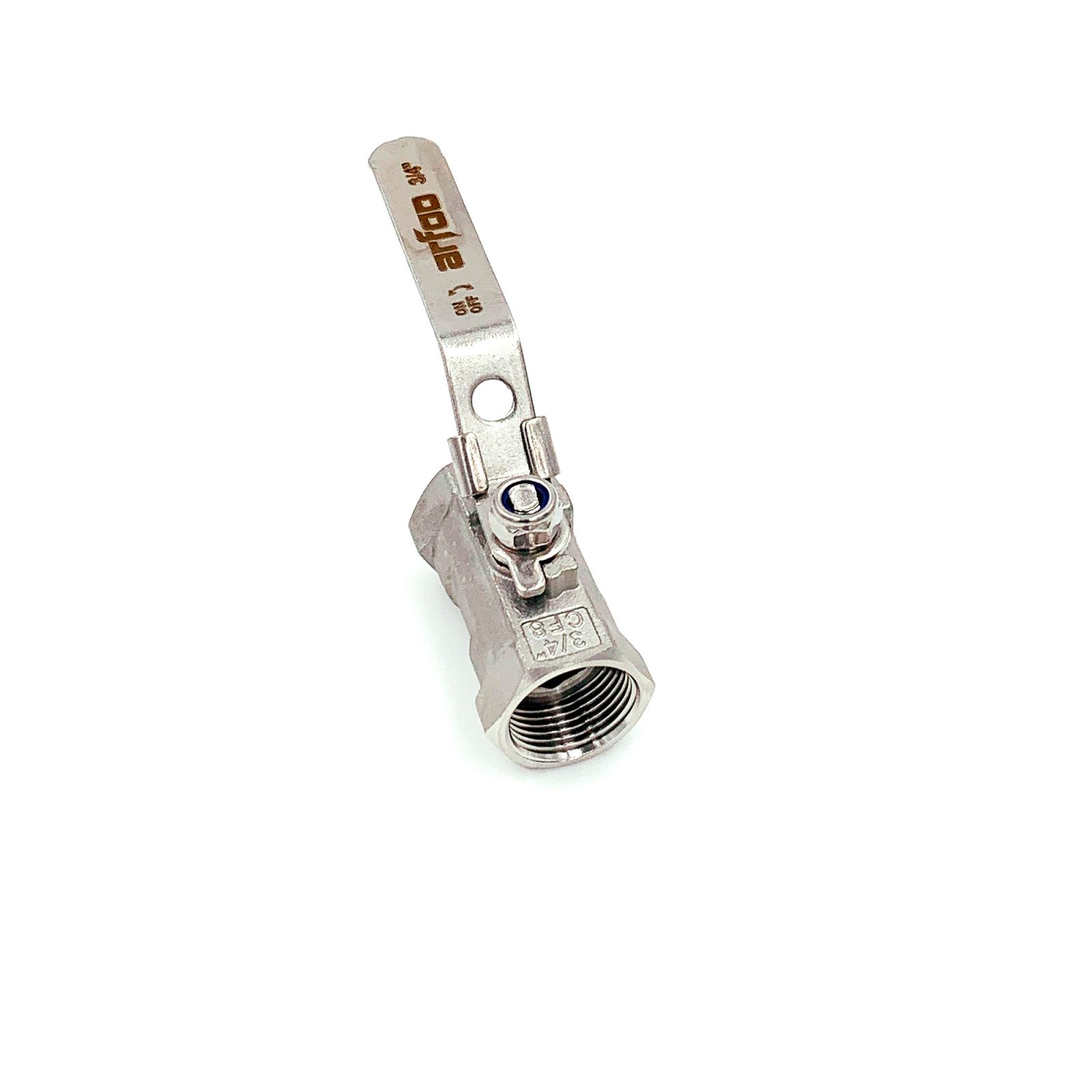 Válvula esfera Monobloco com Rosca fêmea de 3/4″ em aço e inox.