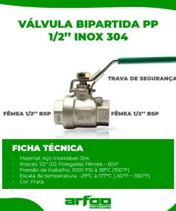 • Roscas: 1/2″ (1/2 Polegada) Fêmea – BSP